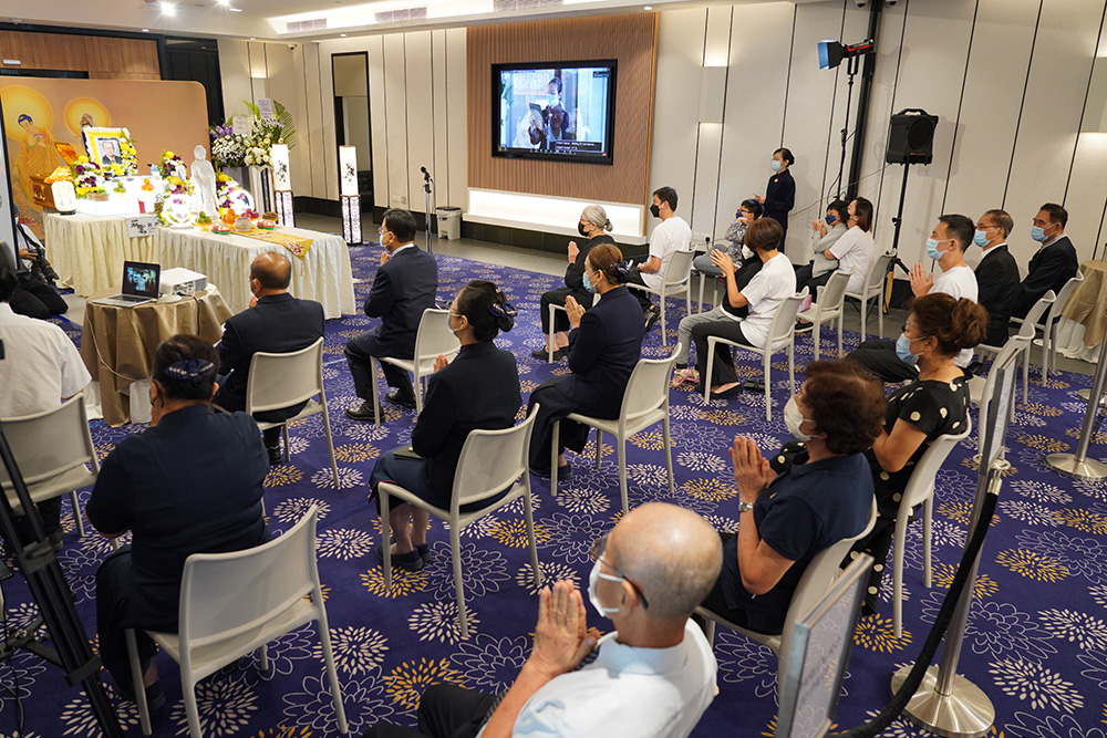 沈喜洲为人风趣有担当,是新加坡慈济人心中的安定力量。大家对他的骤然辞世,极为不舍。6月8日晚间,家属与慈济于新加坡礼仪坊为他举办追思会。治丧处严守防疫人数限制,因此同步网上直播,来自新加坡、马来西亚、台湾、中国大陆和英国等近八百人虔诚助念,共同追思缅怀。