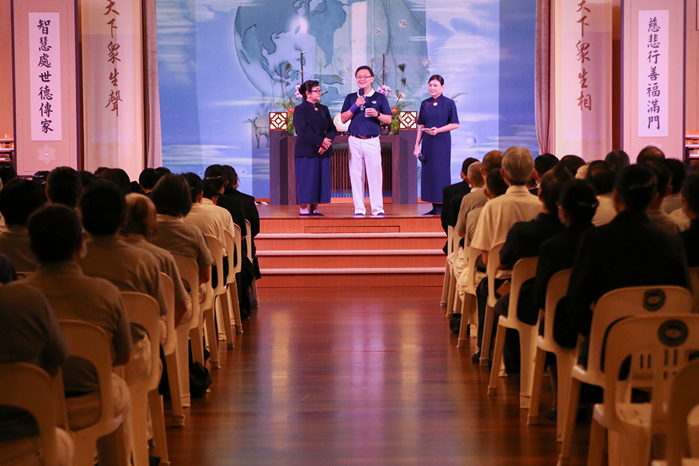 “善哉慈济人,严冬化阳春,行贯菩萨道,喜舍无远近……”在 2021年至2023年期间新受证的慈委轻轻走出舞台,柔美的《心愿》手语演绎,把慈济人慈悲情怀,大智、大仁和大勇的精神,穿插着所有本地志工付出承担的画面中一一呈现,为志工场次拉下帷幕。